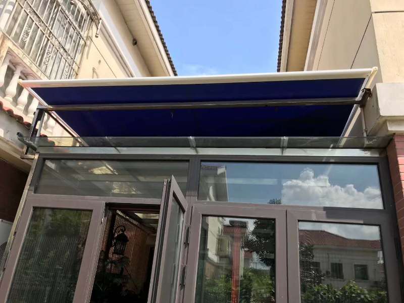 伸縮遮(zhē)陽雨篷收縮自如,遮陽效果好,可(kě)自由調節角度。
